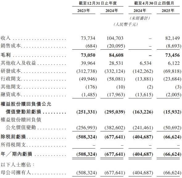 截至2023年及2024年12月31日止年度以及截至2024年及2025年4月30日止四个月,劲方医药亏损总额分别为人民币508.3百万元、人民币677.6百万元、人民币404.7百万元及人民币66.6百万元。劲方医药表示,“往绩记录期间的绝大部分经营亏损来自我们的研发活动产生的成本及开支,包括与我们的临床前研究及临床试验有关的成本及开支,其较我们于同期确认的收入为高。”