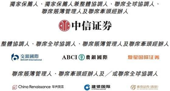 劲方医药本次发行的独家保荐人为中信证券(香港)有限公司,独家保荐人兼整体协调人、联席全球协调人、联席账簿管理人及联席牵头经办人为中信里昂证券有限公司,整体协调人、联席全球协调人、联席账簿管理人及联席牵头经办人为交银国际证券有限公司、农银国际融资有限公司、复星国际证券有限公司,联席账簿管理人、联席牵头经办人及/或联席全球协调人为华兴证券(香港)有限公司、建银国际金融有限公司、广发证券(香港)经纪有限公司。